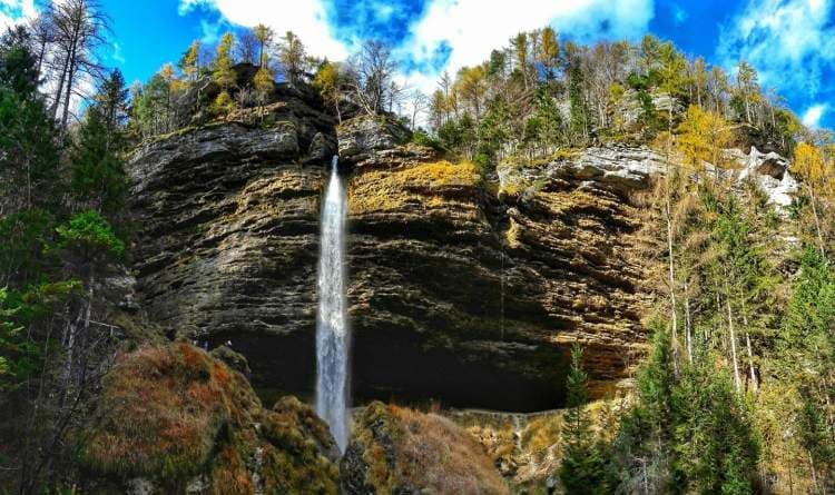 Falling in two tiers from steep limestone cliffs in the Vrata Valley, Peričnik Waterfall is one of Slovenia’s most accessible alpine cascades. A short forest path leads to the lower fall, where visitors can walk behind the curtain of water for a close, immersive view. Spray and cool air dominate the narrow clearing, contrasting with open valley terrain. The stop is brief but memorable, adding movement, sound, and vertical drama to nearby mountain stages.