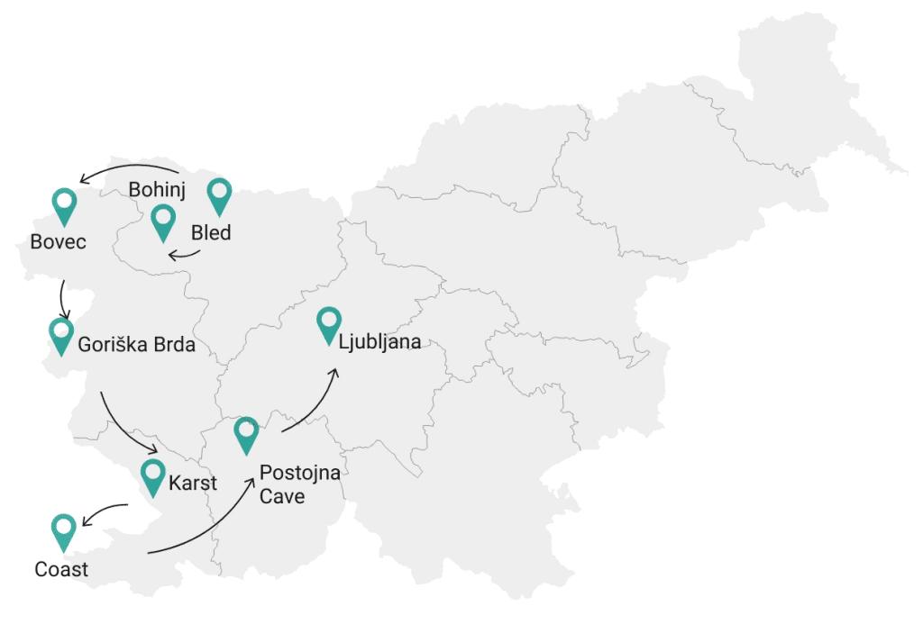 Obwohl Slowenien relativ klein ist, gehört es zu den vielfältigsten Ländern der Welt. Und ein Teil dieses Grünen Herzens Europas, der am meisten heraussticht, ist Westslowenien. Es ist erstaunlich zu denken, dass man in weniger als zwei Stunden von unberührten Bergtälern zur romantischen Adriaküste reisen kann. Diese Reiseroute besteht aus einzigartigen natürlichen und kulturellen Attraktionen und ist Ihr Schlüssel zur Entdeckung von Westslowenien in acht Tagen.