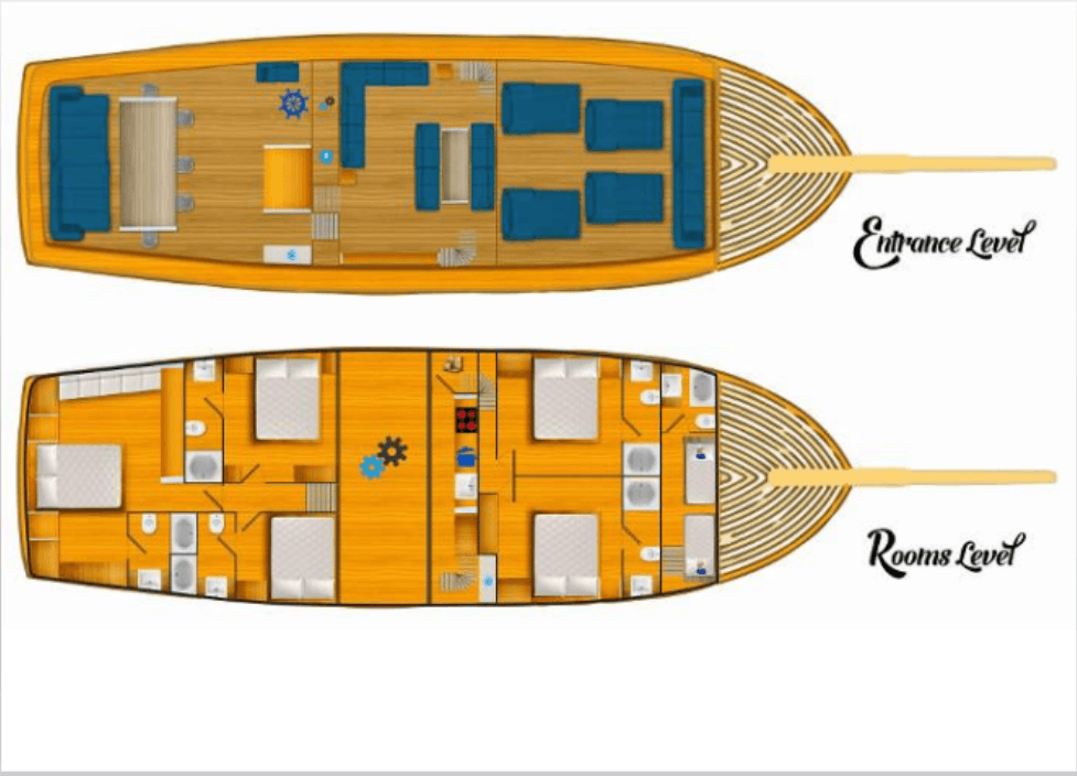 Maske features five cozy and well-appointed cabins—1 master and 4 doubles—all with en-suite bathrooms and air-conditioning. She accommodates up to 10 guests in a warm, inviting atmosphere, ideal for families or groups of friends.