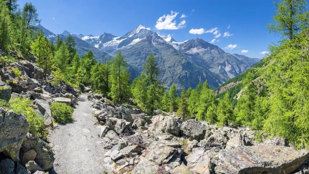 I Alperna gör väl underhållna stigar och spektakulära vyer upplevelsen verkligen oförglömlig. Matterhorn och Mont Blanc är några av de mest kända topparna i Alperna, och båda erbjuder utmanande vandringar med den extra bekvämligheten av att bo i väl underhållna fjällstugor eller rifugios.
